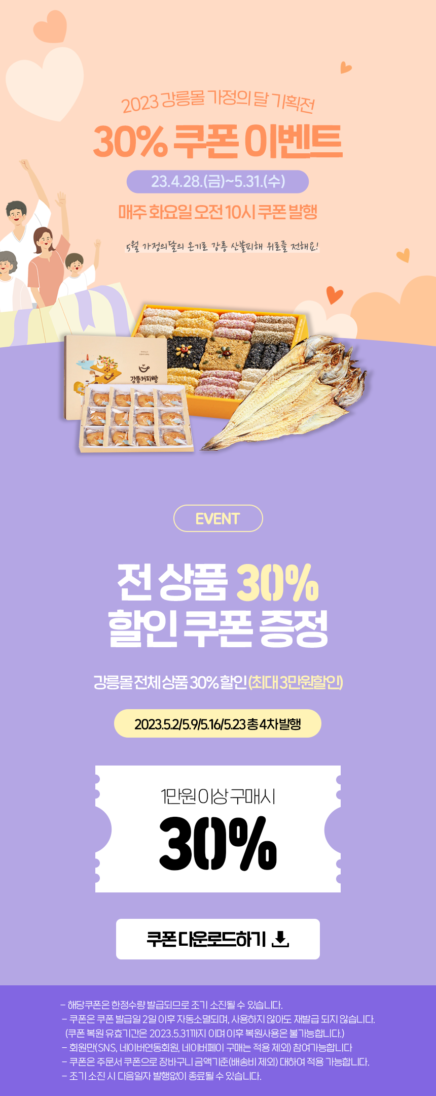 2023 강릉몰 가정의달 30% 할인쿠폰 이벤트 안내